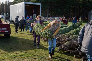 Our business development officer, Rosemarie helped set up the Spirit in the Trees for the Kiwanis. She helped unload 150 trees, pounded in posts to zip tie them too, cut off the ends of every tree, and set up electric to every tree.